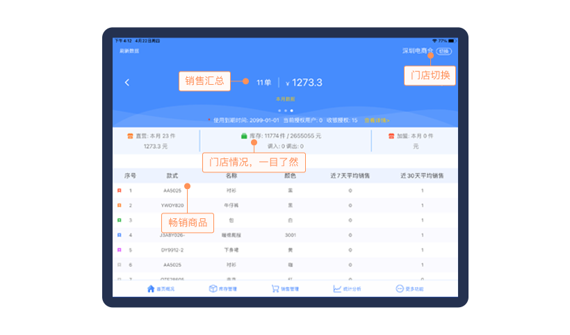 庫存統計表,銷售統計表,銷售管理統計表,營業分析報表等等,每個業務都有專業的報表。豐富的報表,助理高效庫存流轉,提升庫存周轉率